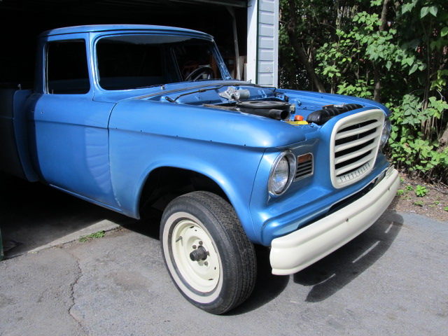 after painted in primer I painted it in 1963 Studebaker Blue Mist Metallic. I repainted the front grille with