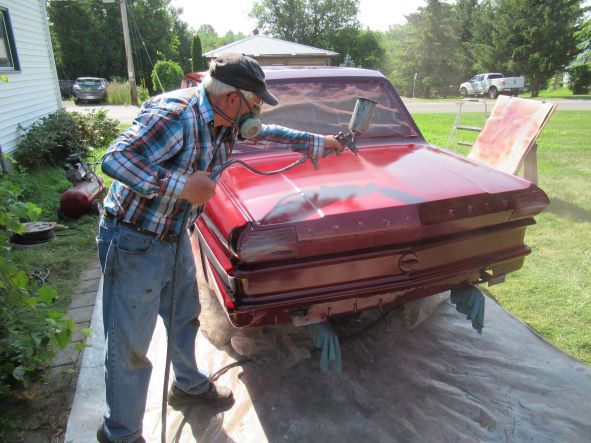 we increased the air pressure and repainted the trunk lid and sides of the car. We got a smoother surface and saved some time and effort in the sanding and buffing process
