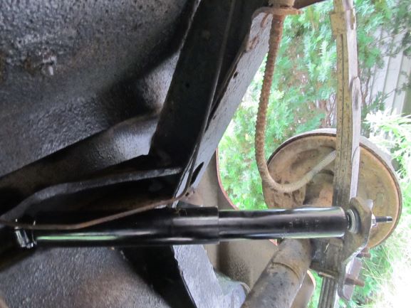 2. Then compress the shock and thread the bottom portion into the hole and secure with nut